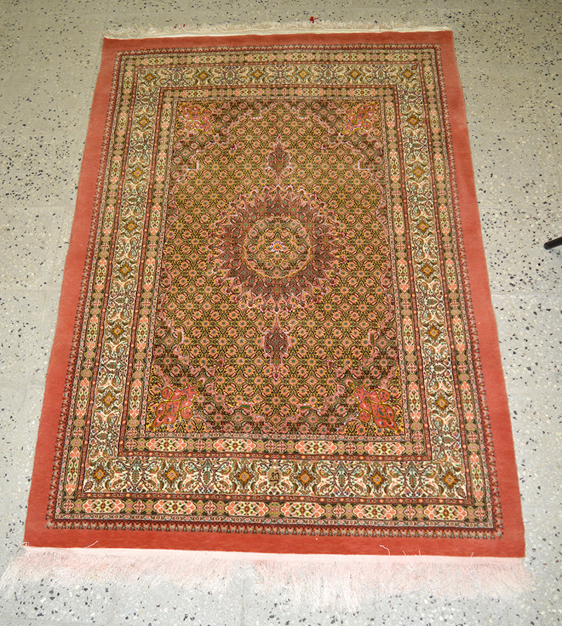 قالیچه ریز ماهی ترنج دار چله ابریشم برای خرید تماس بگیرید
